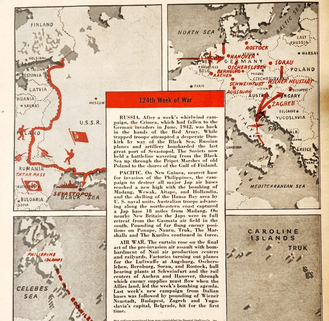 1944 WW2 124th Week Of The War Map Pathfinder Magazine Page Military DWP7B