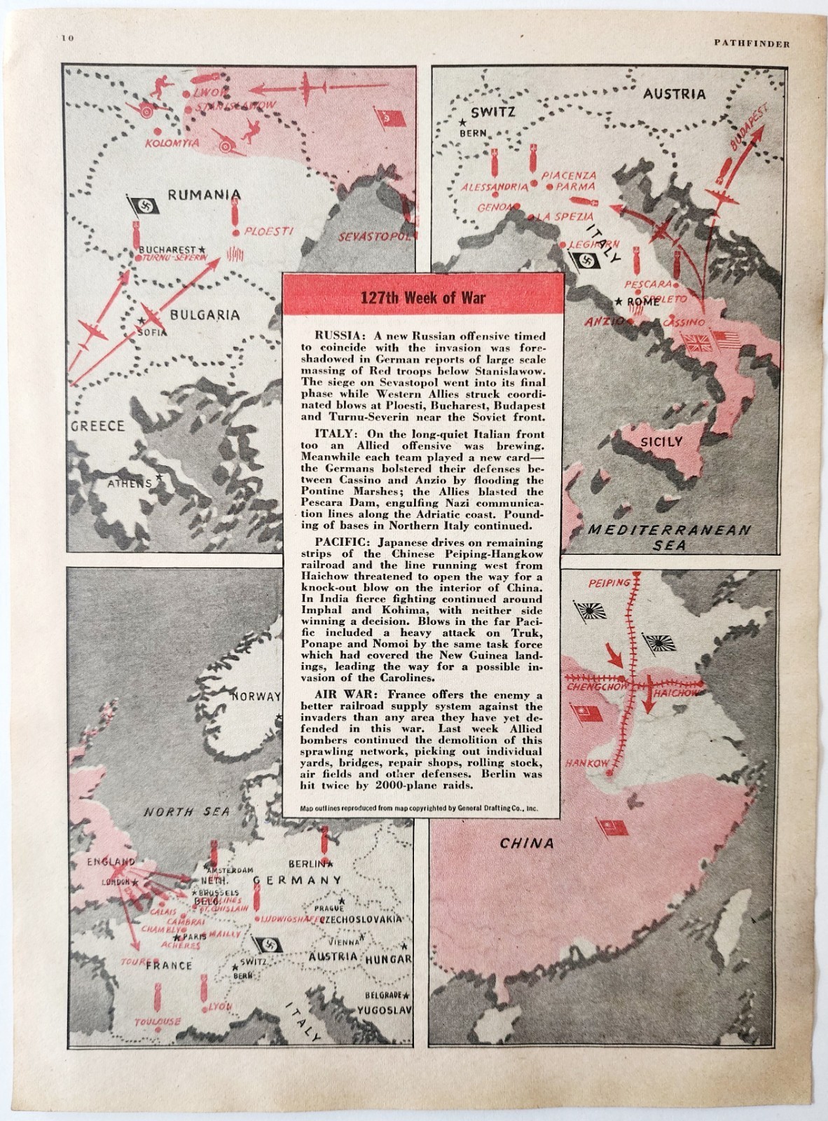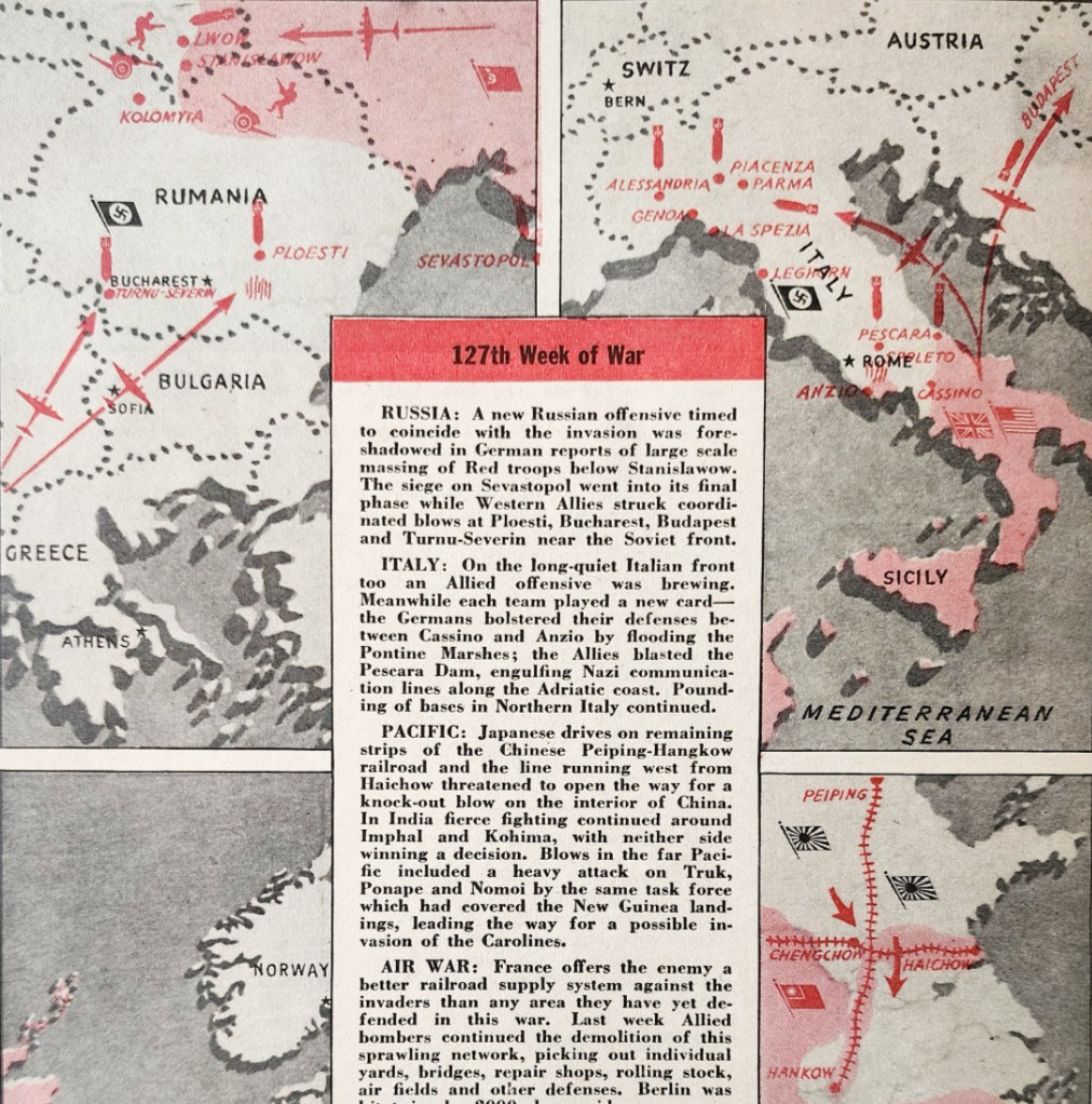 1944 WW2 127th Week Of The War Map Pathfinder Magazine Page Military DWP7A