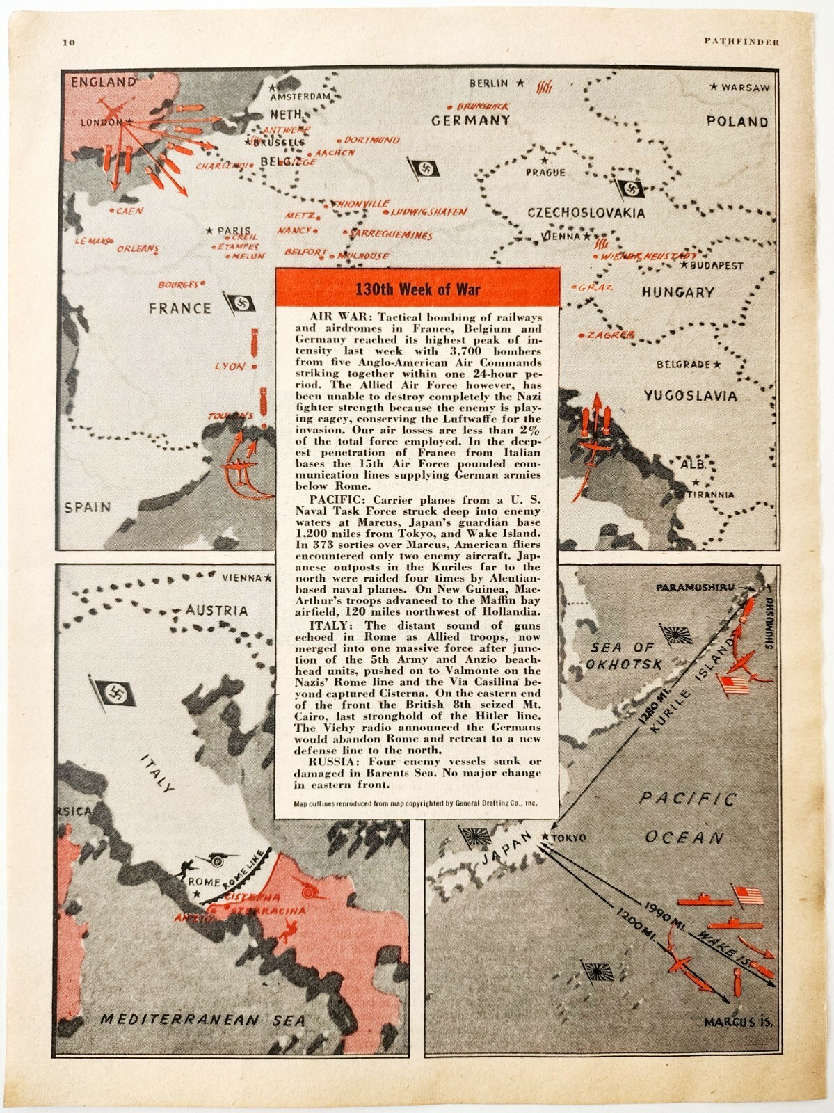 1944 WW2 130th Week Of The War Map Pathfinder Magazine Page Military DWP7B