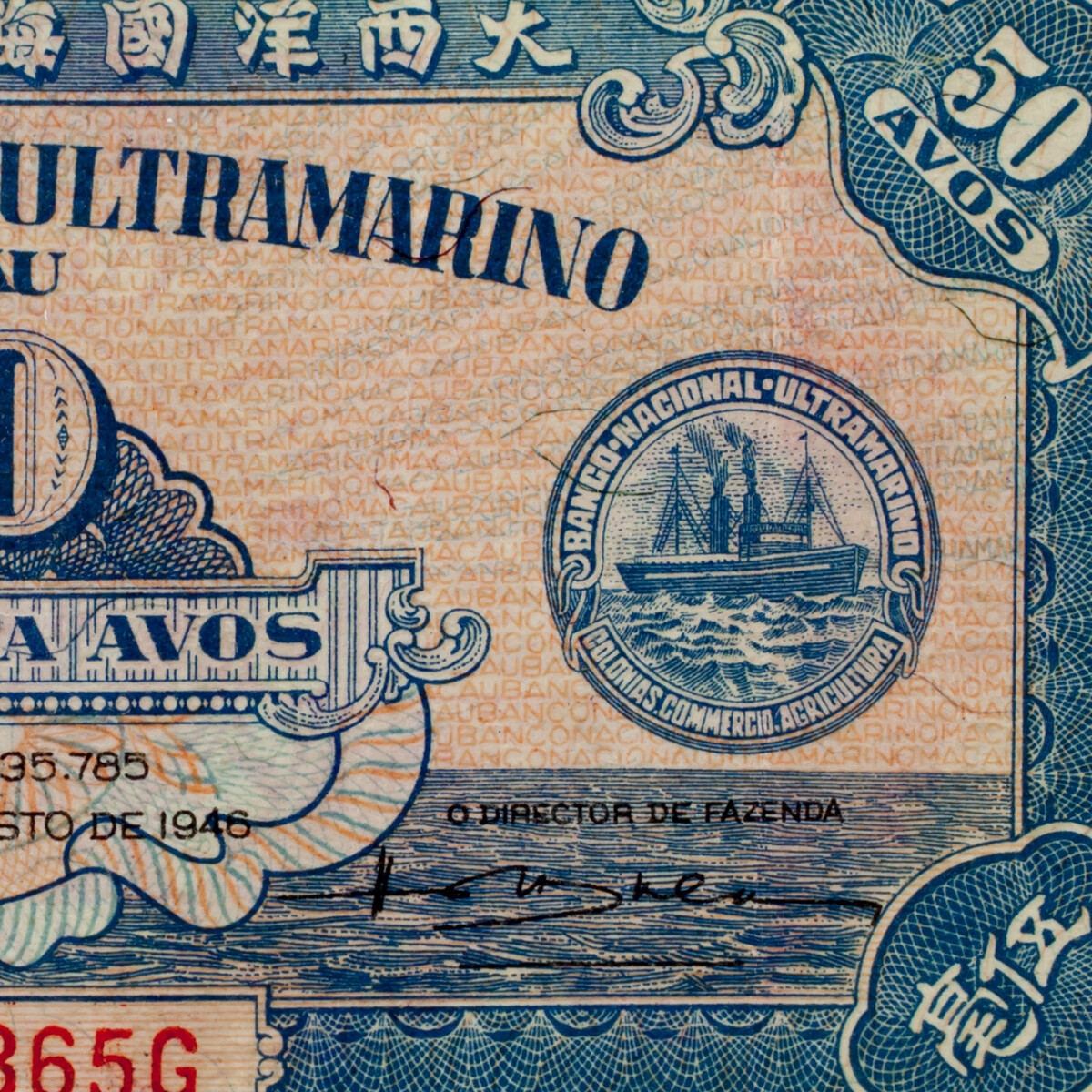 - 1946 Banco Nacional Ultramarino Macau 50 Avos Note Pick #38 Very Fine Condition