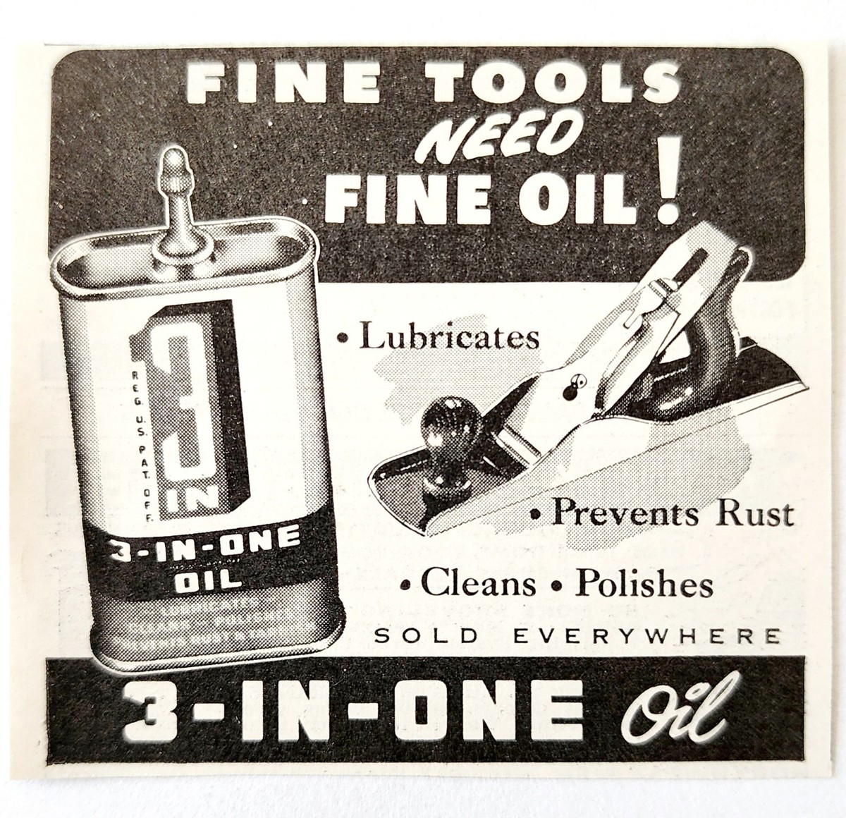 1947 3 In One Oil Machine Grade Lubricant Advertisement Vintage Tool Supply E8J