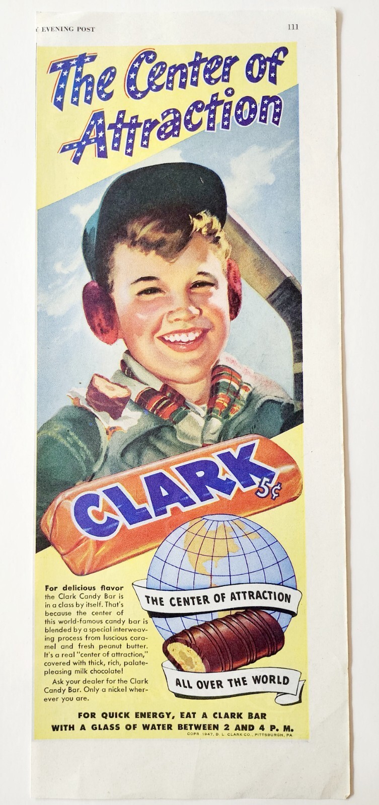 1947 Clark Candy Bar Advertisement Chocolate Quick Energy Vintage DWJJ23