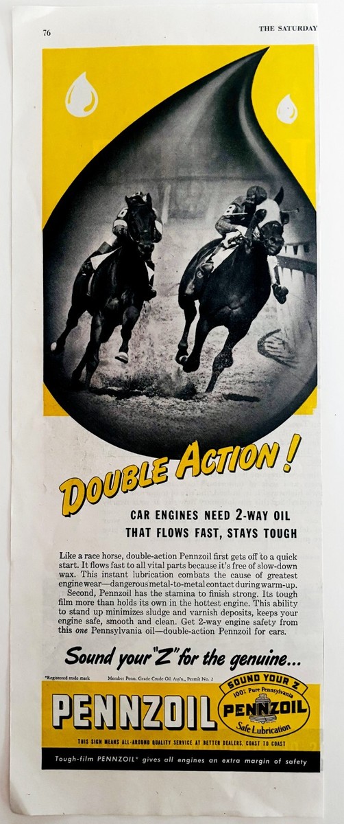 1947 Pennzoil Advertisement Gasoline & Oil Double Action Pennsylvania DWJJ21