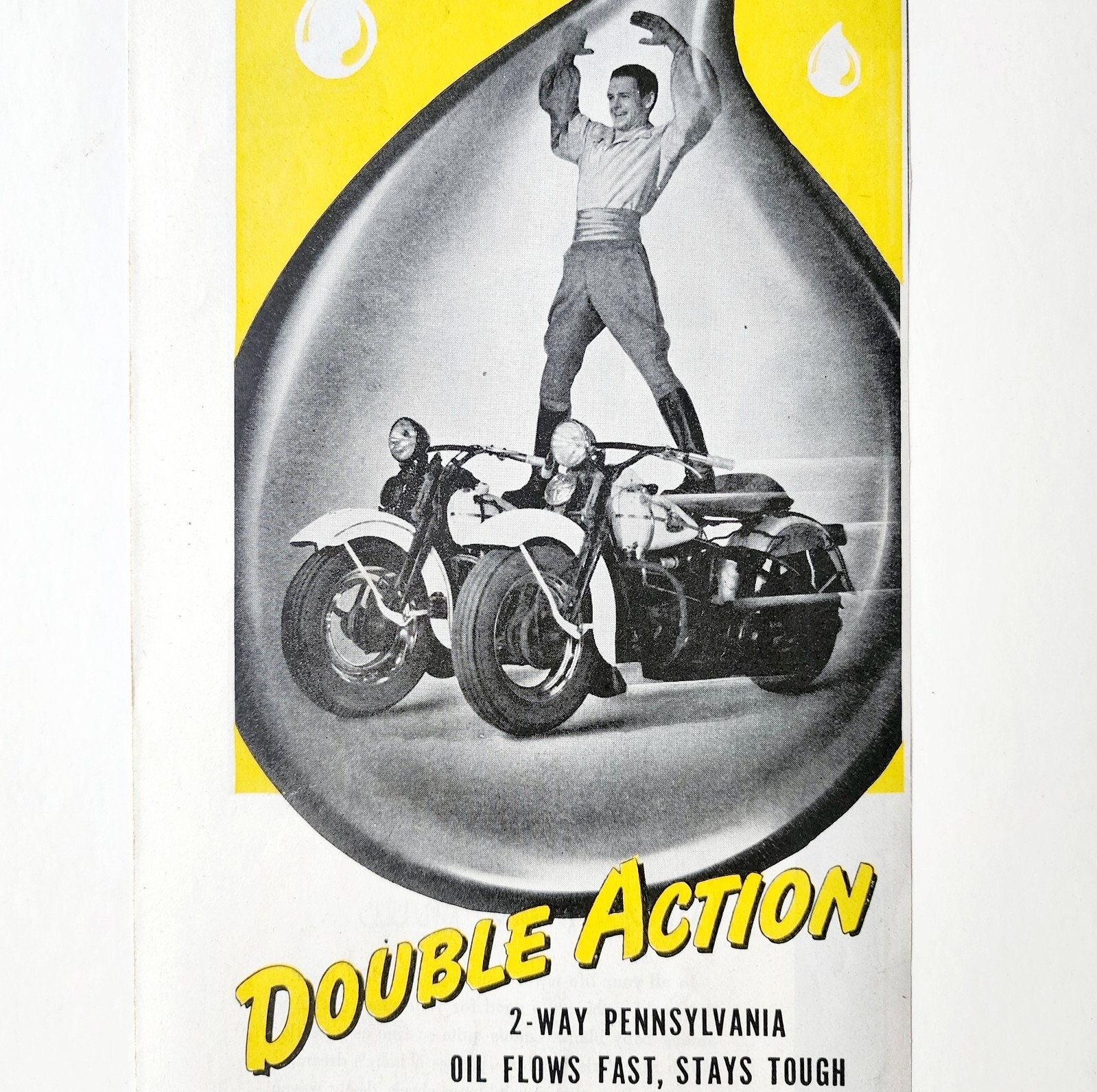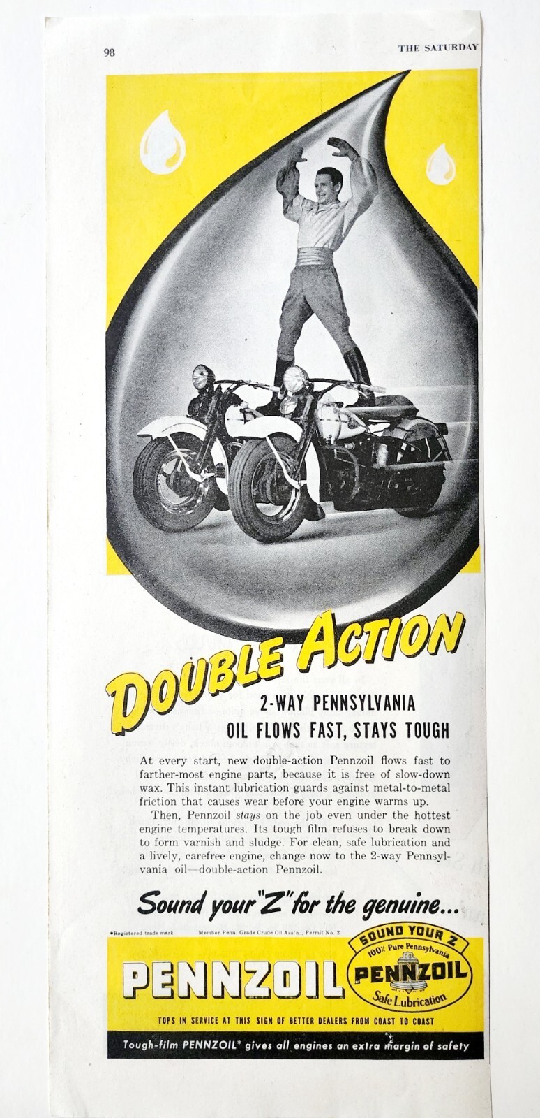 1947 Pennzoil Motor Oil Advertisement Motorcycle Stuntman Double Action DWJJ23