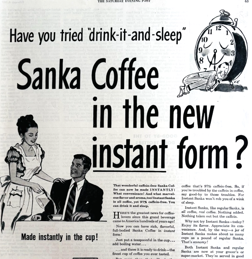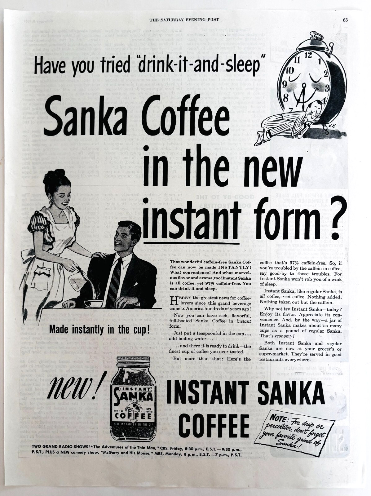 1947 Sanka Instant Coffee Advertisement Drink It And Sleep Vintage DWWW8