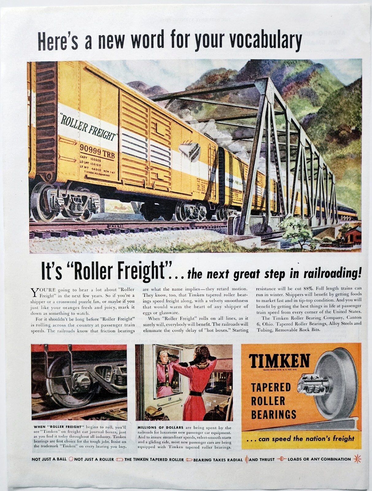 Primary image for 1947 Timken Roller Bearings Advertisement Freight Railroad Transportation DWJJ22