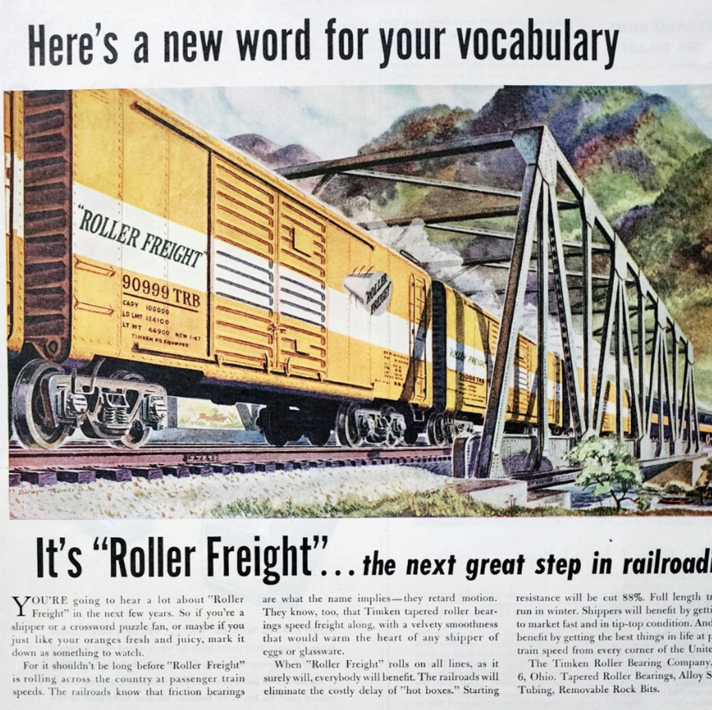 1947 Timken Roller Bearings Advertisement Freight Railroad Transportation DWJJ22