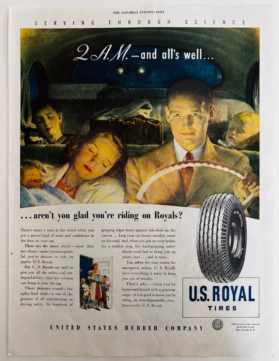 1947 US Royal Tires Advertisement Automobilia National Rubber Co Vintage DWWW7