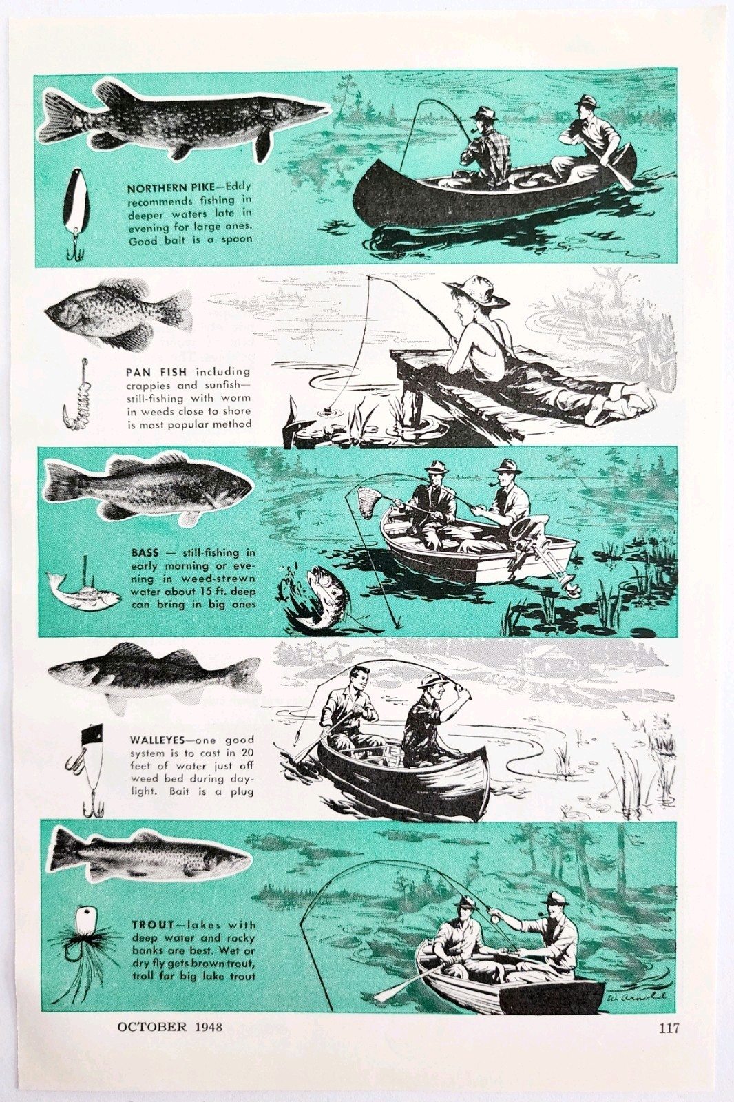 1948 Fishing Info-graphic Popular Mechanics Magazine Page Sporting Fish E2H1