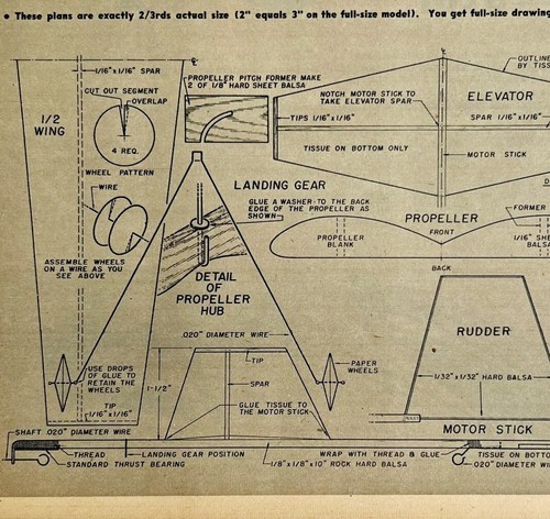 1949 Aviation Blueprint Build Pattern Model Airplane Ephemera Art Print 2/3rds