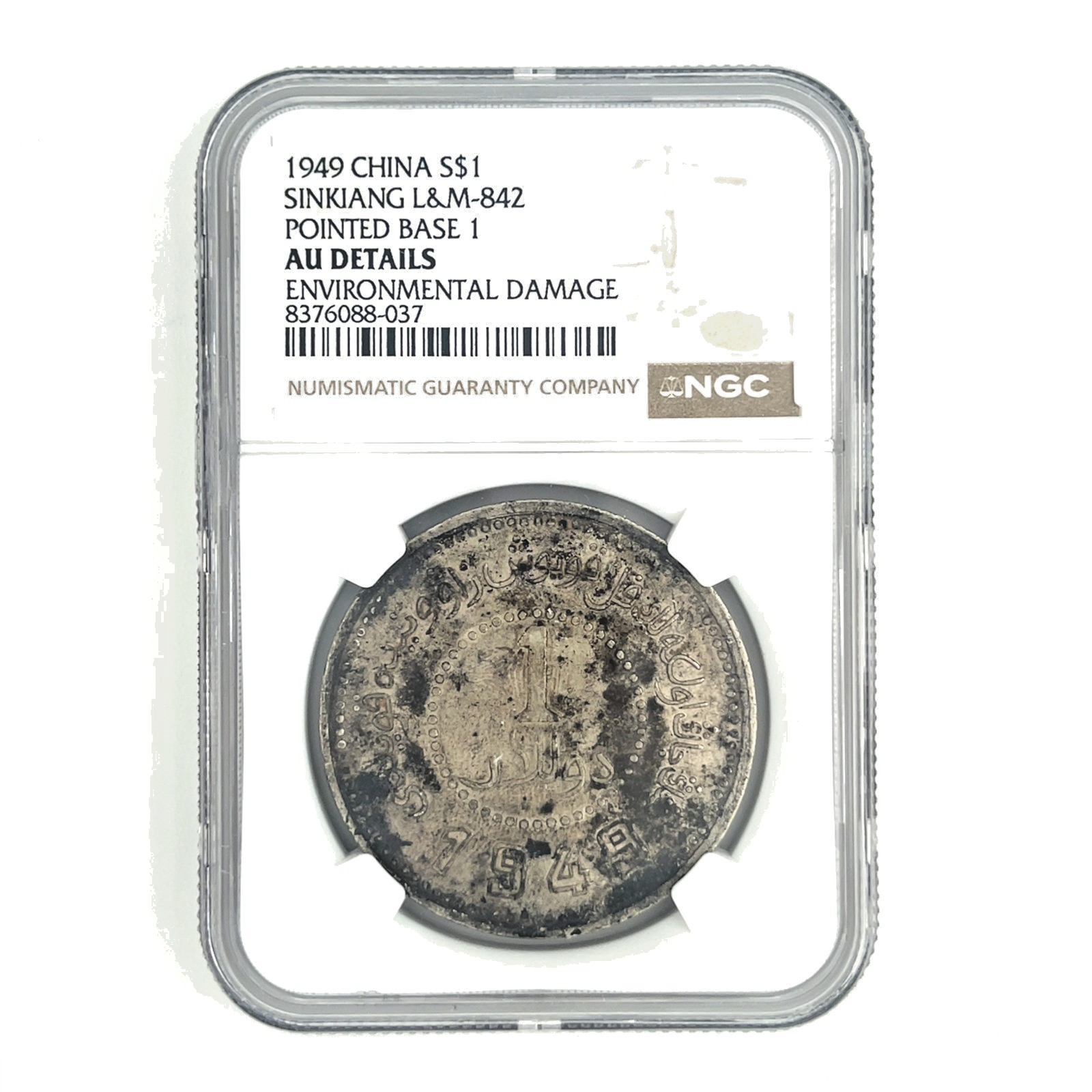 - 1949 China S $1 Dollar Sinkiang L&M-842 Spitz Basis 1 Von NGC As Au Details Zur