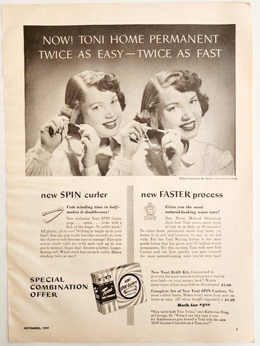 1949 Toni Spin Curlers For Hair Advertisement Health And Beauty Products DWNad1