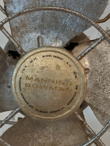 - 1950 8 Inch manning bowman Argent 085002 Table Bureau Fan Travail