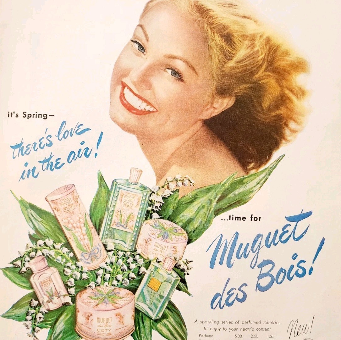 Primary image for 1950 Coty Muguet Des Bois Perfume & Powder Advertisement Beauty Products DWJJ9