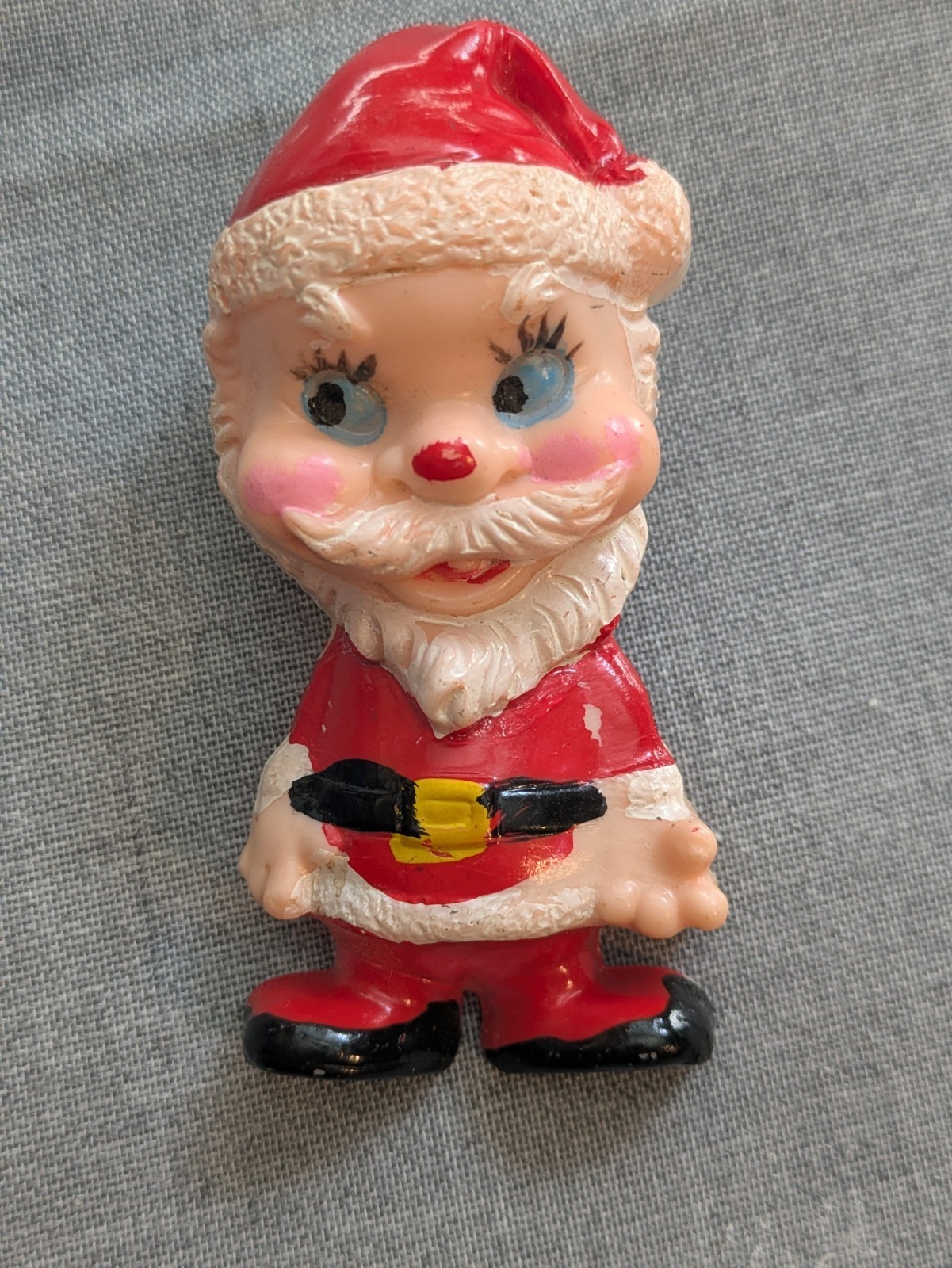 Le produit est une lumiere de nuit en plastique du Santa Claus des annees 1950 du Japon, avec une conception 3D. Cet objet de vacances et de saison de collection est une piece d'origine en plastique, representant le Pere Noel comme sujet. Parfait pour celebrations de Noel, cette figurine vintage du Pere Noel ajoute une touche nostalgique a toute collection ou decoration de vacances.