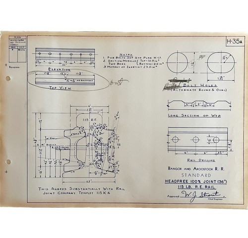 1950 Railroad Bangor Aroostook Headfree 100% Joint RE Rail Blueprint H35a DWDD13
