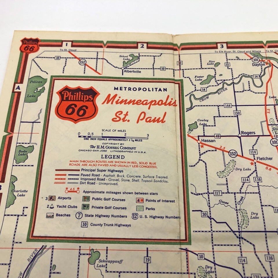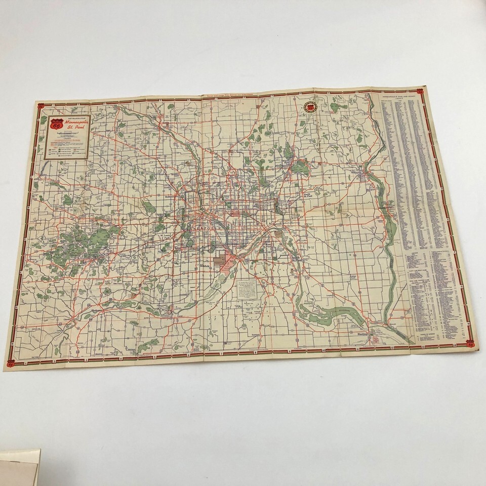 1950's Phillips 66 Road Map Minneapolis St. Paul & Vicinity 27x18 inches