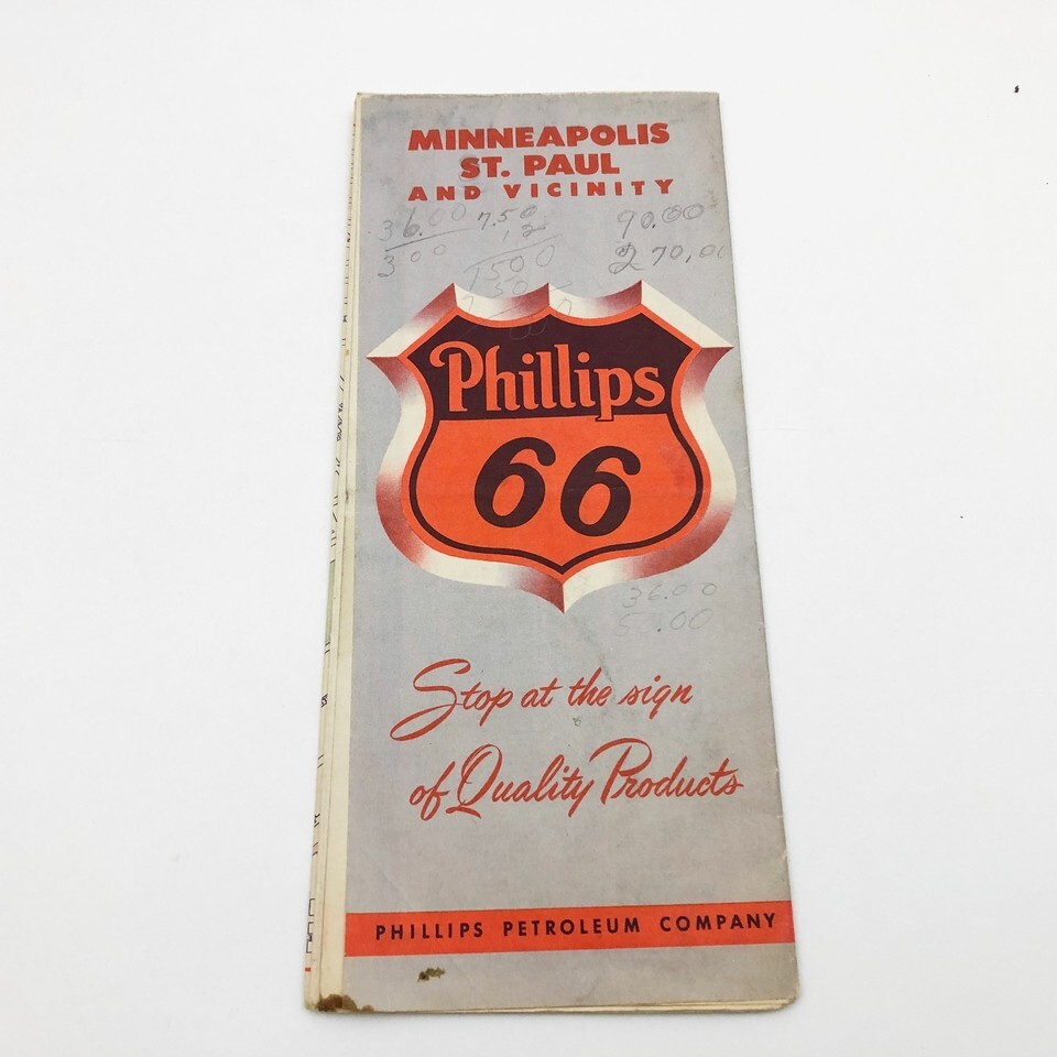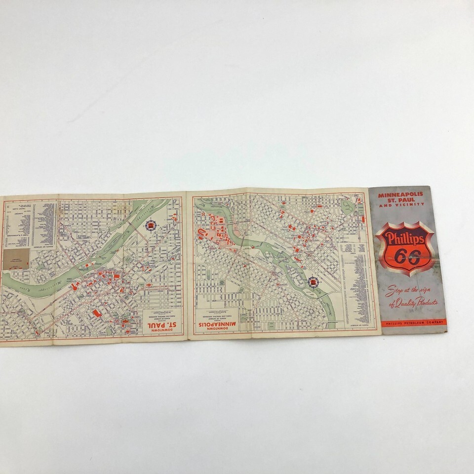 Vintage Collectable Phillips Petroleum Company, Phillips 66, Minneapolis St. Paul and Vicinity road map 1950's Approx:24 x 18 inches when opened SKU-AP-0-11-25-037 Acceptable Condition: Stains and some notes as well as worn edges and corners. See The Pictures Yes, we combine orders for shipping whenever possible. If did not combine the shipping on your order correctly when we combine the items and check the shipping, if it is less than the shipping charges that you paid, we will issue you a refund for the difference.