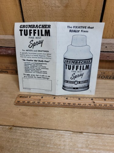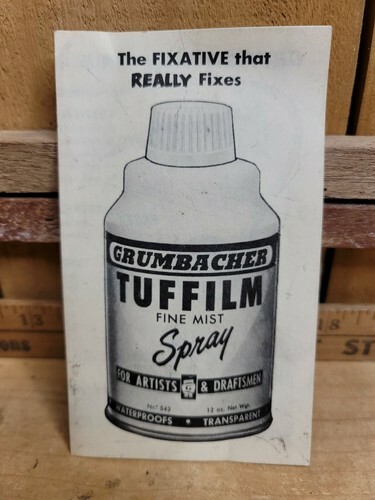 1950s Grumbacher Tuffilm Fine Mist Spray Fixative Artists Advertising Pamphlet 5.5" x 3.25 closed 5.5" x 6" opened PLEASE REFER TO ALL PHOTOS FOR A BETTER VISUAL DESCRIPTION OF THE ITEM All of My Items Come from a Smoke Free Home I Strive to Ship Next Day Feel Free to Look Through My Other Listings Please Contact me with any issues prior to leaving negative/neutral Feedback or low detail ratings as I will always do my best to solve any problems that may come up! Please refer to all photos above for a better visual description of the product being offered and it's condition. If you have any further questions please feel free to message me Any props that are used in the taking of the photos are not included, only the item/items in the title of the listings are being sold