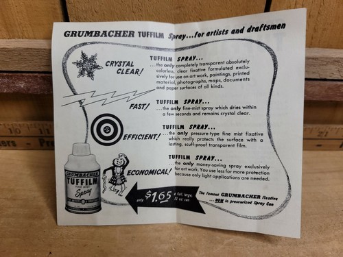Primary image for 1950s Grumbacher Tuffilm Fine Mist Spray Fixative Artists Advertising Pamphlet