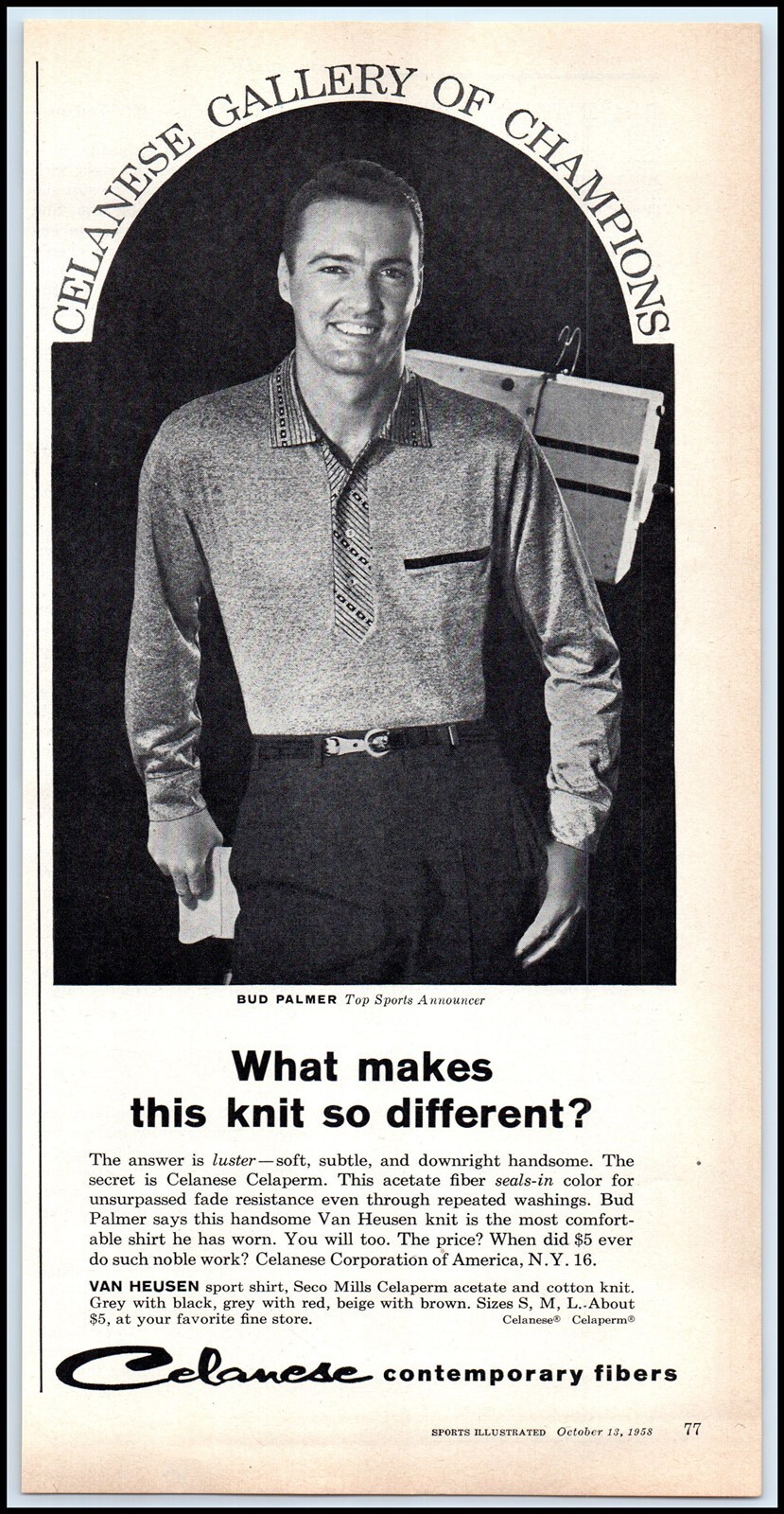 1950s Van Heusen Knit Men's Shirts PRINT AD Sports Announcer Bud Palmer BX2