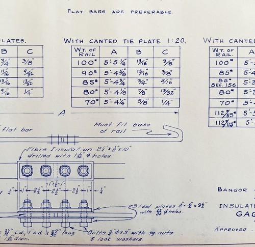 1951 Railroad Bangor Aroostook Gage Rods Insulated And Non Blueprint H7 DWDD14