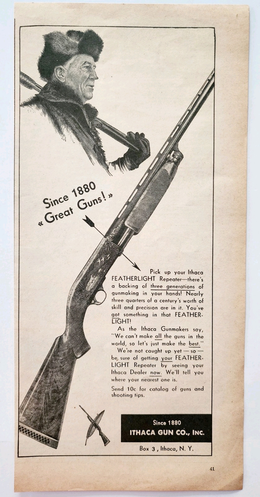 1952 Ithaca Gun Co Featherlight Advertisement Hunting New York Guns DWQQ6