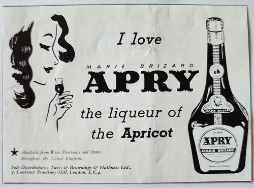 1952 Marie Brizard Apry Liqeuer Apricot Advertisement Sphere UK Import E90B