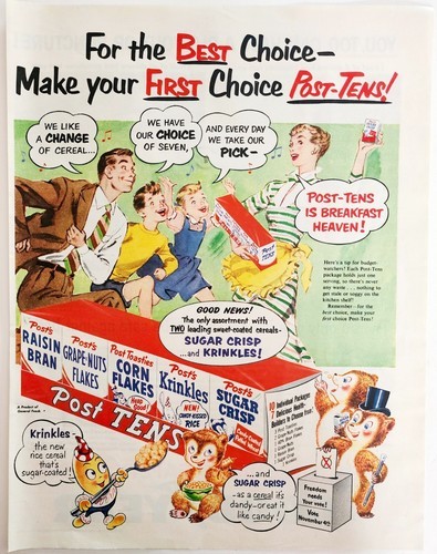 1952 Post Cereal Mini Box Variety Ten Pack Advertisement Breakfast HM2N
