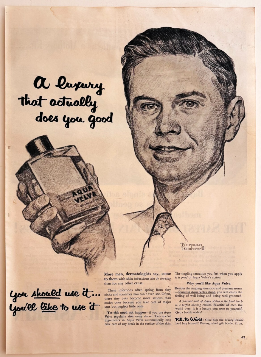 1953 Aqua Velva After Shave Advertisement Norman Rockwell Health Beauty DWWW13