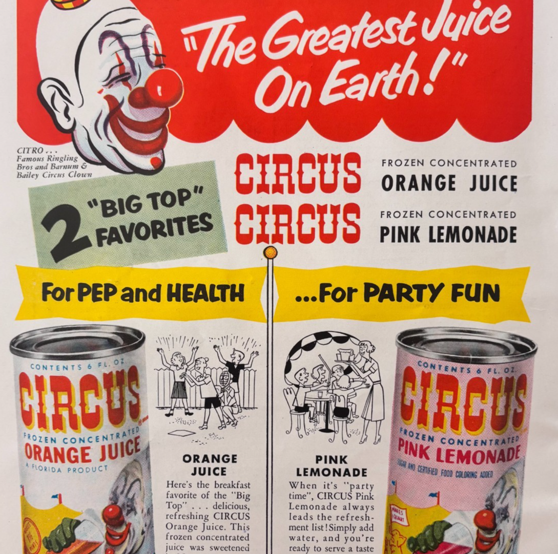 1953 Circus Fruit Drink Advertisement Ringling Brothers Citro The Clown F15S