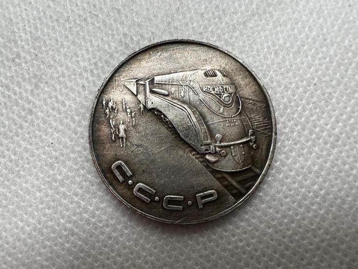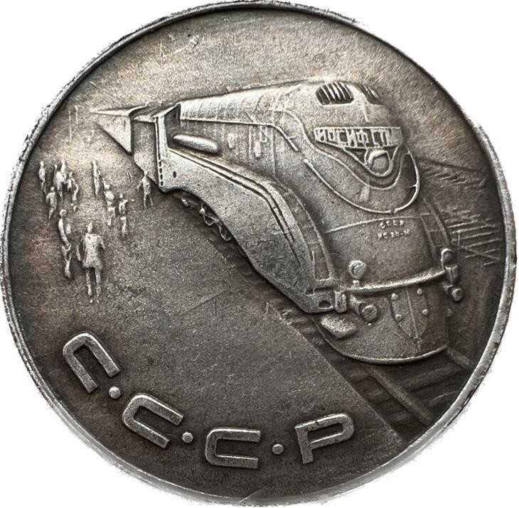 Diese 1953 Gedenkmedaille für den Nachschlag sowjetischer Technik ist eine bemerkenswerte Hommage an die Errungenschaften der sowjetischen Technik und des technologischen Fortschritts auf dem Hohepunkt des Kalten Krieges. Die Vorderseite der Medaille zeigt prominent eine leistungsstarke Dampflokomotive, die die Starke und Geschwindigkeit symbolisiert, die für die Entwicklung des sowjetischen Eisenbahnsystems von entscheidender Bedeutung waren. Die Lokomotive ist umgeben von komplizierten Darstellungen von Individuen, die den für die Sowjetunion charakteristischen Geist der kollektiven Arbeit und des technischen Fortschritts einfangen. Die Aufschrift "C.C.P." am unteren Rand der Medaille identifiziert unmissverstandlich seine Herkunft und feiert die industriellen Errungenschaften des Landes.
