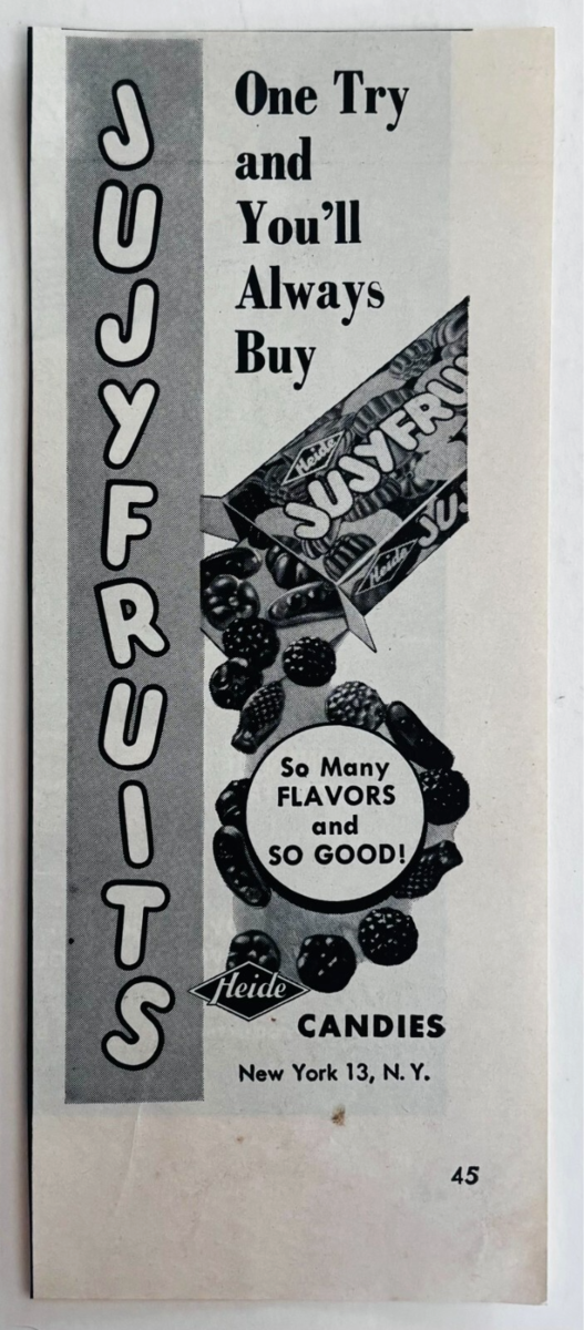 1953 Heide Candies Jujyfruits Advertisement Candy One Try And You'll Buy DWWW13