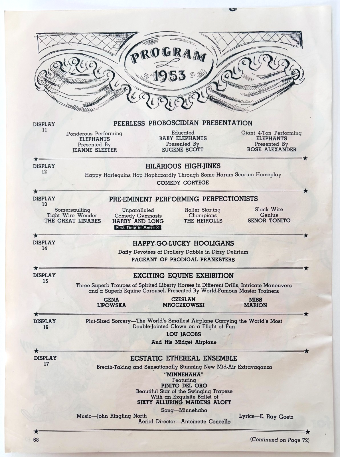 1953 Ringling Bros Barnum & Bailey Program Schedule Advertisement Partial F15S