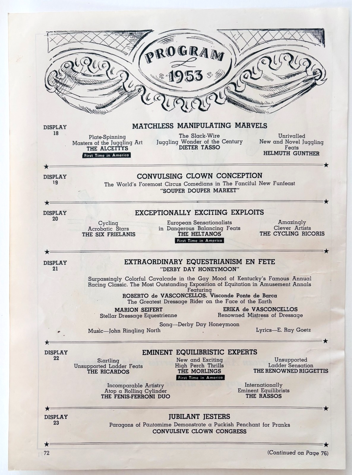 1953 Ringling Bros Barnum & Bailey Program Schedule Advertisement Partial F15S