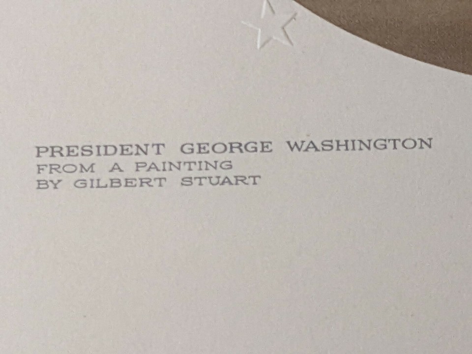 Zum Verkauf steht ein gebrauchter 1954 Dwight Eisenhower Weihnachten White House Geschenkdruck George Washington Stuart.