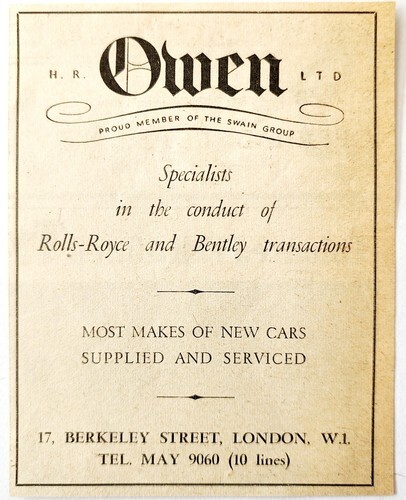 1954 Owen Rolls Royce Bentley Car Dealership Advertisement Automobilia E89G2