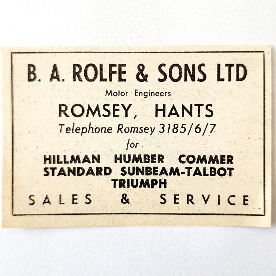 1954 Rolfe And Sons Car Dealership Romsey Advertisement Automobilia E89F4