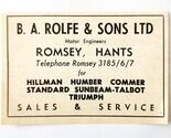 Primary image for 1954 Rolfe And Sons Car Dealership Romsey Advertisement Automobilia E89F4
