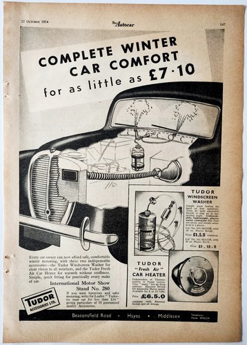 1954 Tudor Windshield Washer Advertisement Motor Show Automobilia DWPP10