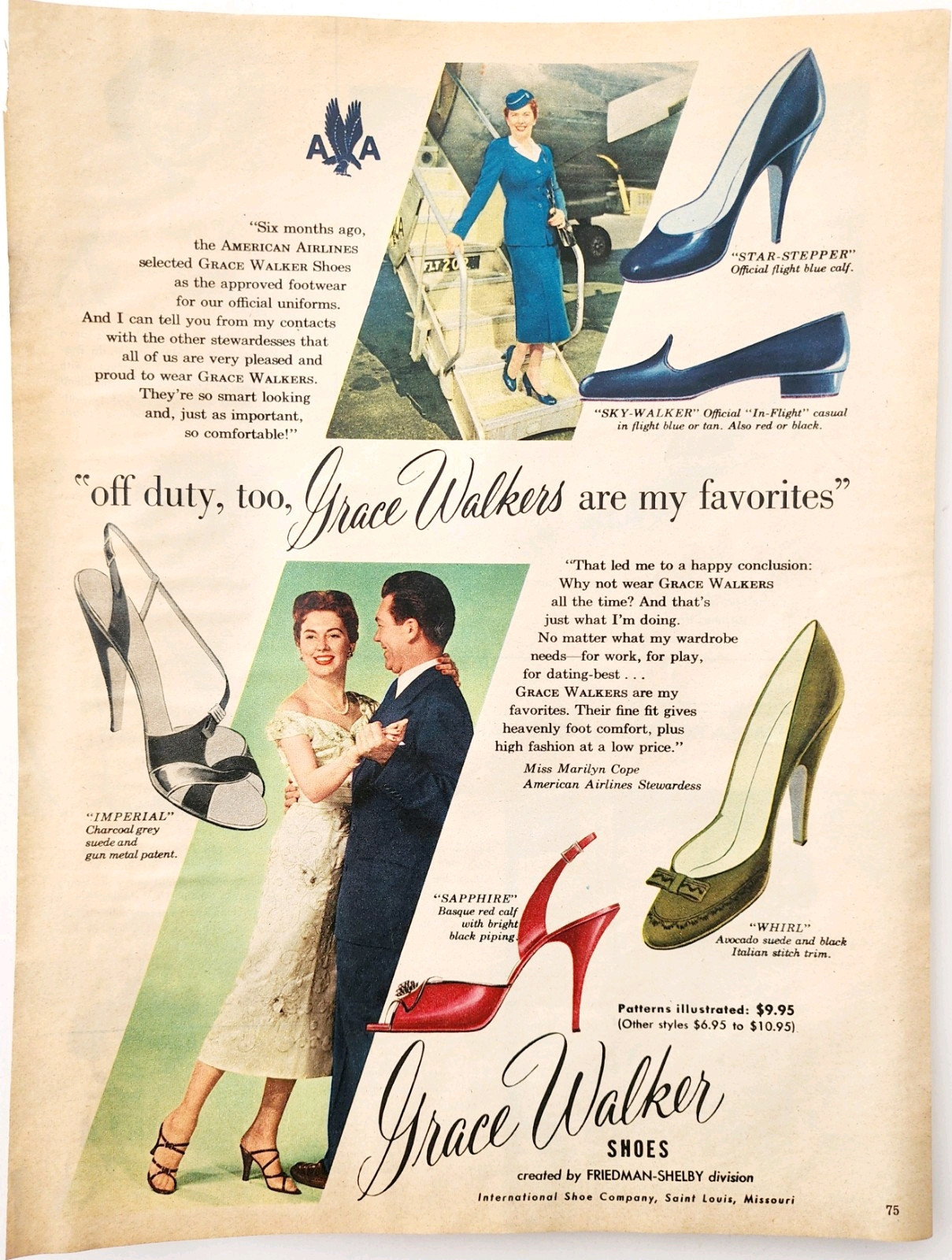 1955 American Airlines Grace Walker Shoes Advertisement Heels Footwear DWQQ8