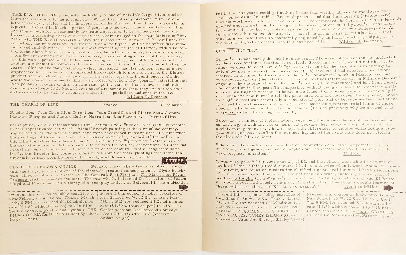 1955 Cinema 16 Film Notes Sunday By The Sea Railway Switchman Original NYC C99