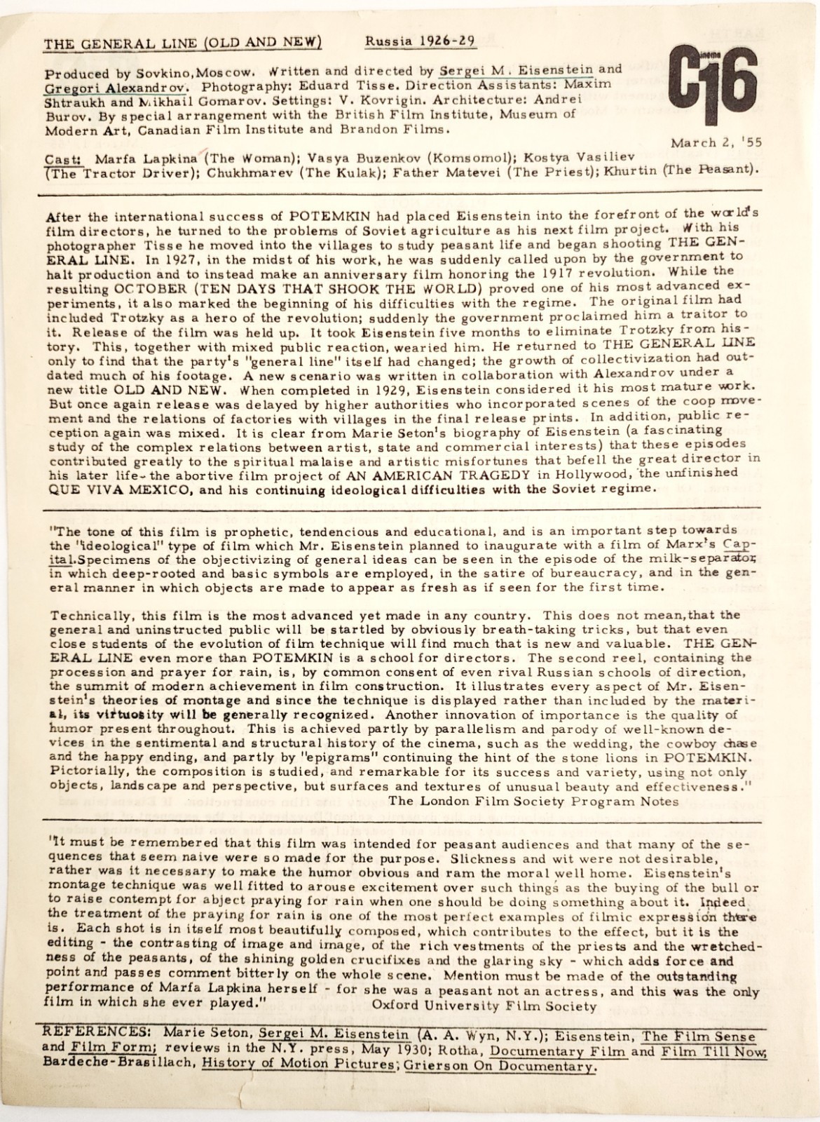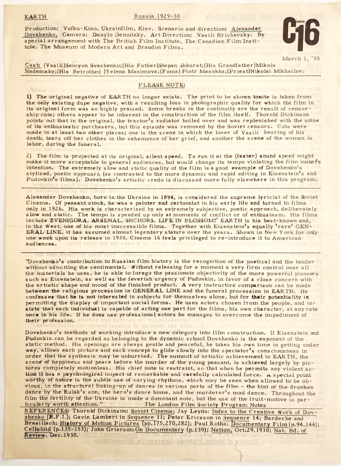 - 1955 Cinema 16 Russian Film Notes Earth The General Line Original NYC C99