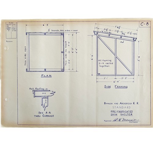 1955 Railroad Bangor Aroostook Shim Shelter Fabrication Blueprint C8 DWDD15