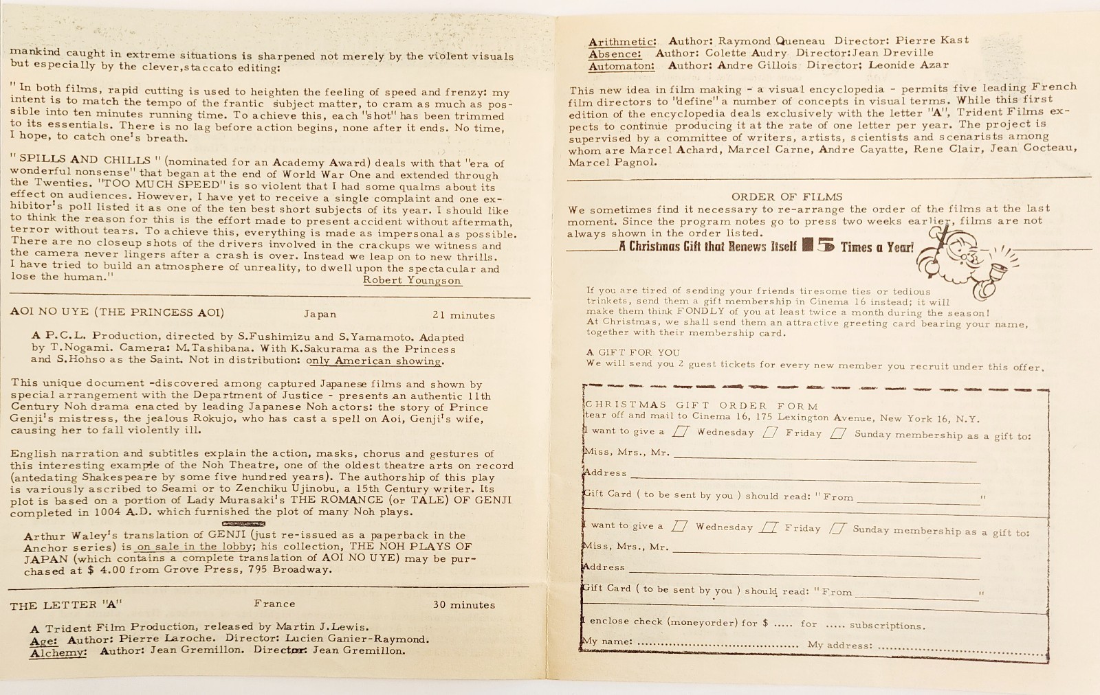 1956 Cinema 16 Film Notes Ursula Disorder Baratier Spills & Chills Original C99