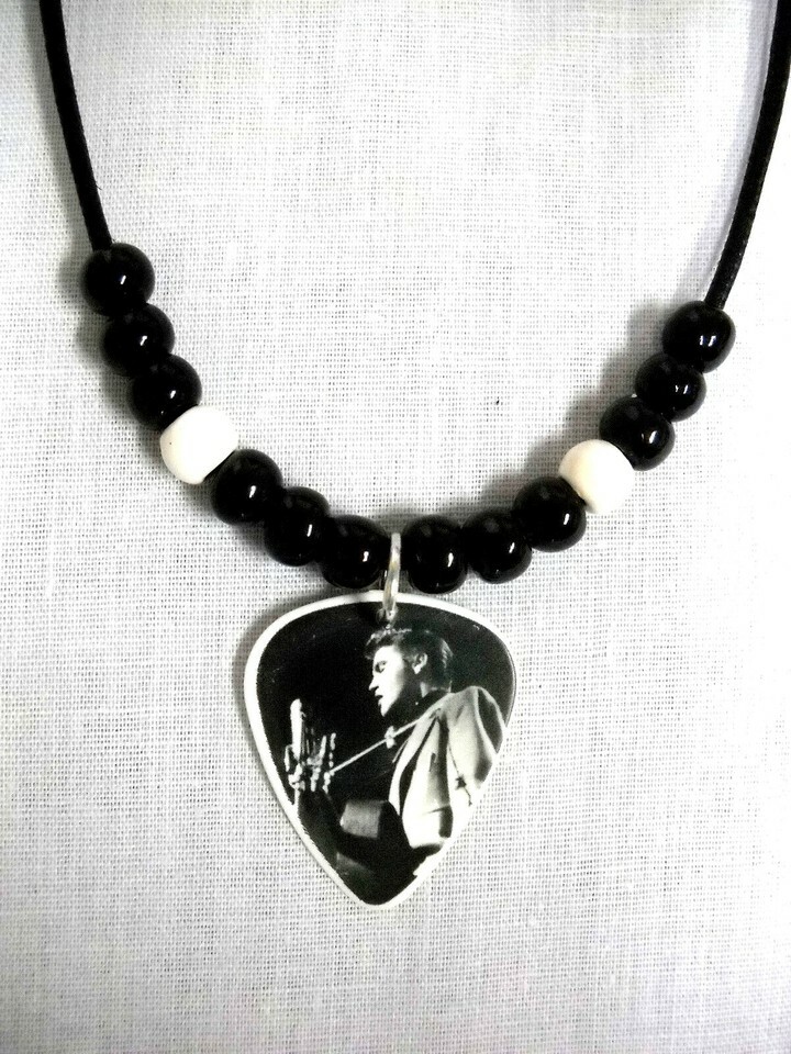 - 1956 ELVIS PRESLEY ON STAGE BLACK & WHITE PHOTO GUITAR PICK PENDANT NECKLACE
