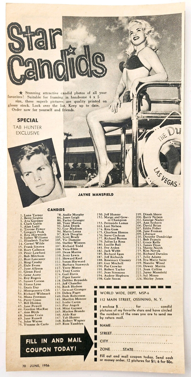 1956 Jayne Mansfield Swimsuit Candid Advertisement The Dunes Las Vegas DWQQ8