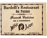 1957 Bardelli's French Restaurant Advertisement San Francisco Vintage DWX10A