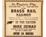 1957 Brass Rail Saloon Casino Advertisement Virginia City Nevada Vintage DWX10A