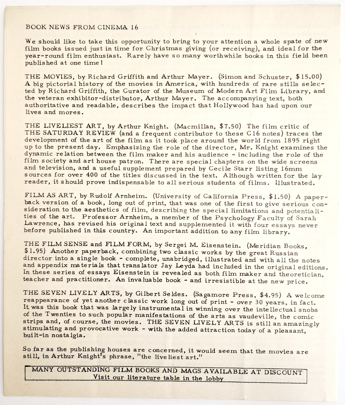 1957 Cinema 16 Film Notes Twentieth Century Hawks Season 11 Nov Original 2 C99